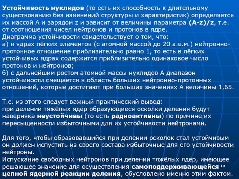 Слайд 10Устойчивость нуклидов (то есть их способность к длительному существованию без