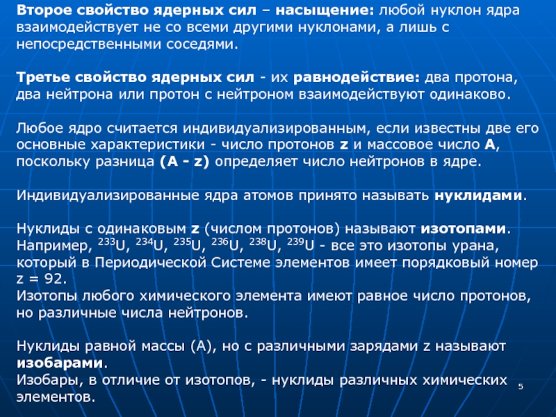 Слайд 5Второе свойство ядерных сил – насыщение: любой нуклон ядра взаимодействует