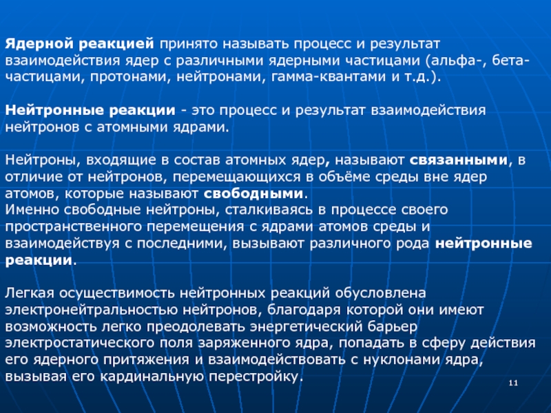 Слайд 11Ядерной реакцией принято называть процесс и результат взаимодействия ядер с