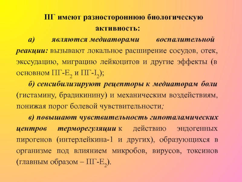 Слайд 10ПГ имеют разностороннюю биологическую активность: