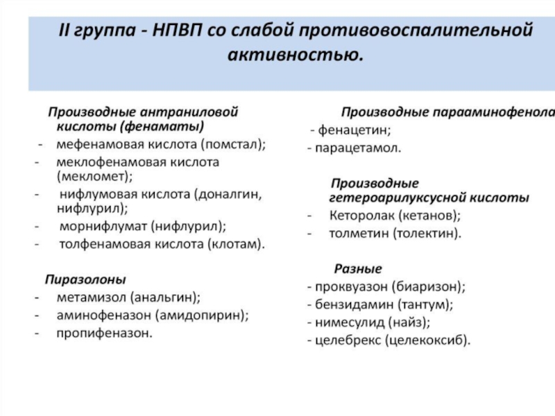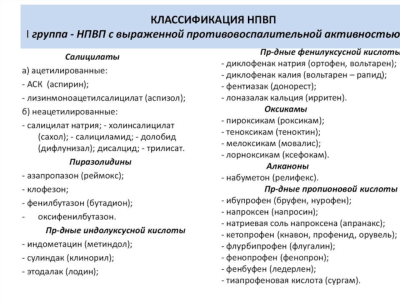 В настоящее время в мире насчитывается около 70 оригинальных противовоспалительных препаратов нестероидной структуры.