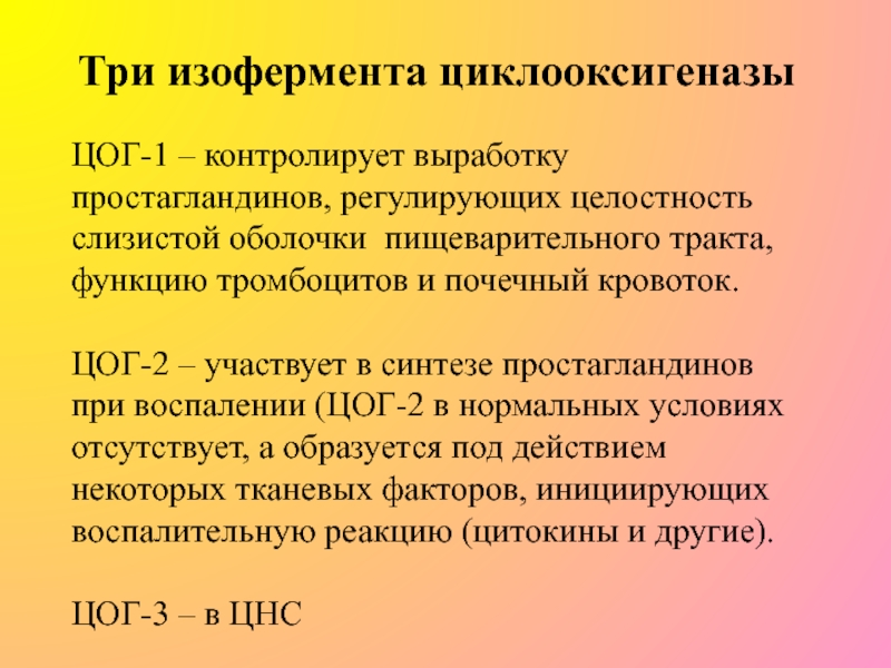 ЦОГ-1 – контролирует выработку простагландинов, регулирующих целостность
