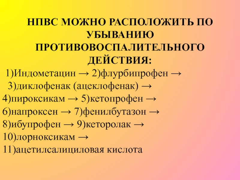 НПВС МОЖНО РАСПОЛОЖИТЬ ПО УБЫВАНИЮ ПРОТИВОВОСПАЛИТЕЛЬНОГО