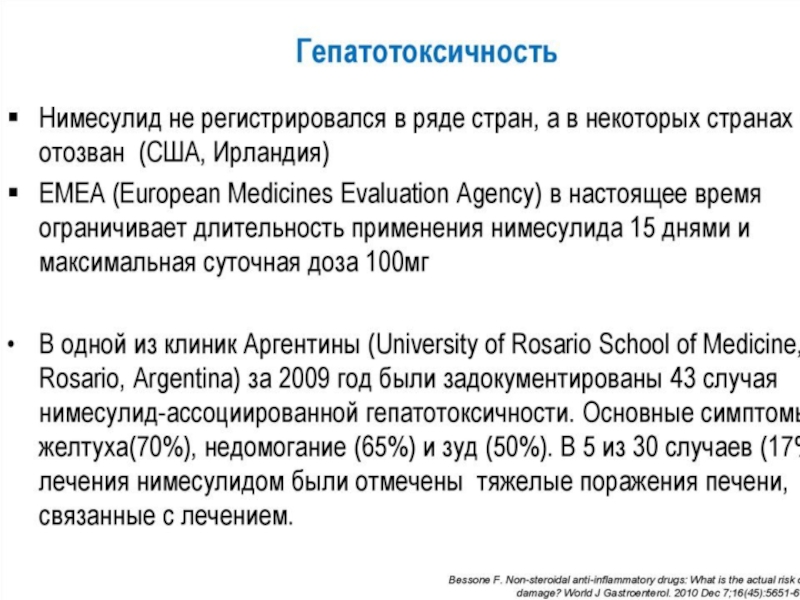 Слайд 45Наиболее гастротоксичны - аспирин, индометацин, сулиндак и пироксикам