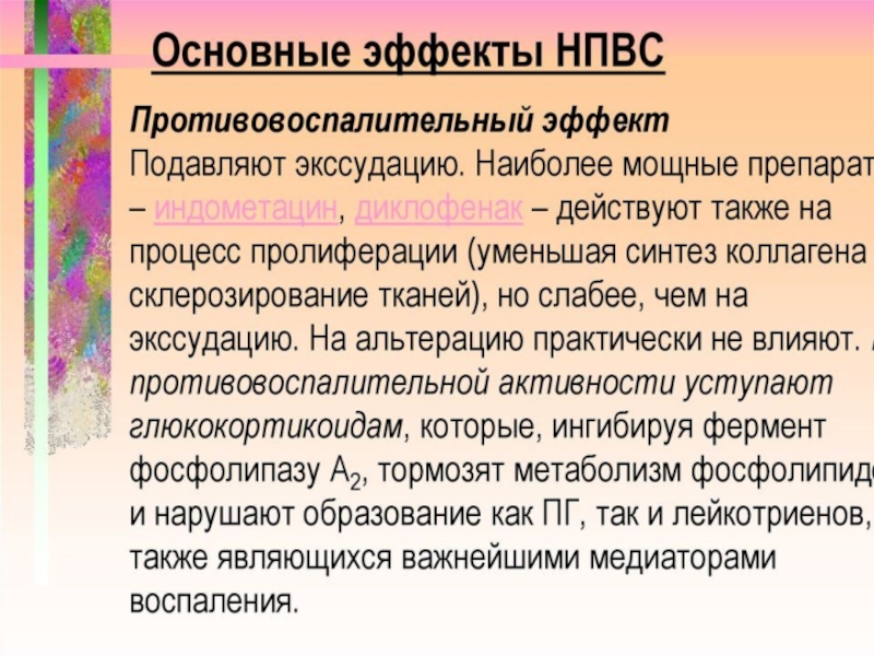сосудов, отек, экссудацию, миграцию лейкоцитов и другие эффекты (в основном
