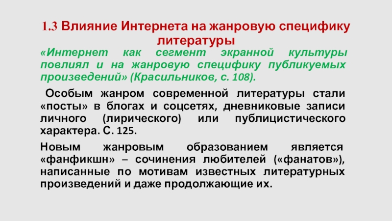 Слайд 171.3 Влияние Интернета на жанровую специфику литературы