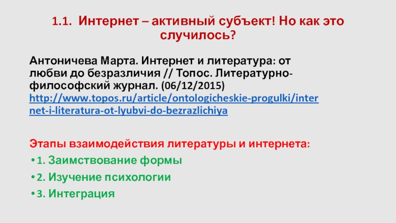 Слайд 361. Антоничева Марта. Интернет и литература: от любви до безразличия