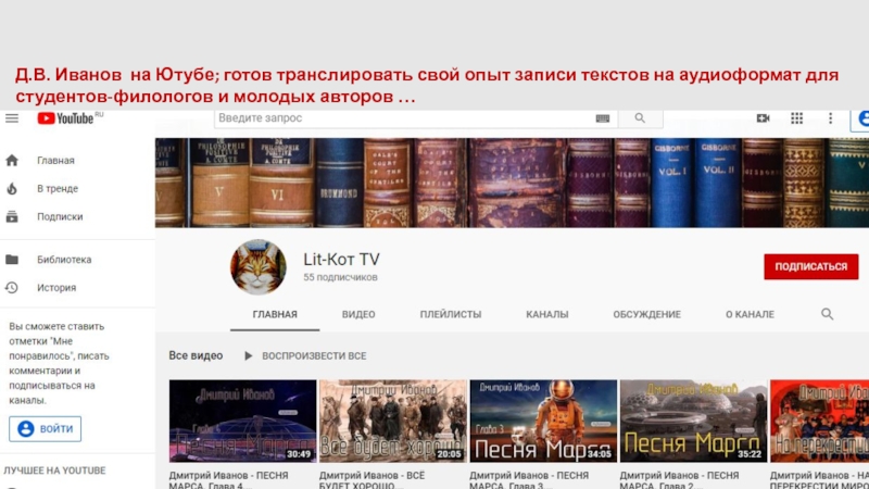 Слайд 23Д.В. Иванов на Ютубе; готов транслировать свой опыт записи текстов