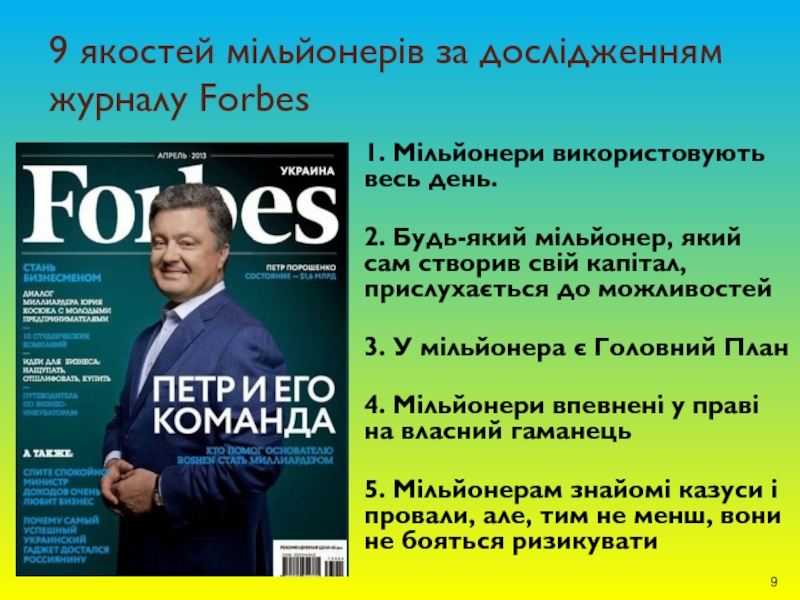 Слайд 99 якостей мільйонерів за дослідженням журналу Forbes
