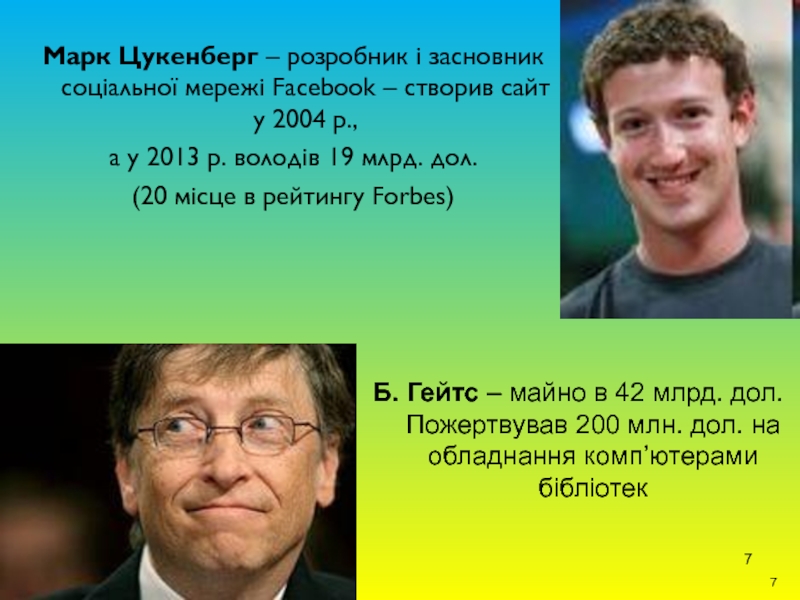 Слайд 7Марк Цукенберг – розробник і засновник соціальної мережі Facebook –