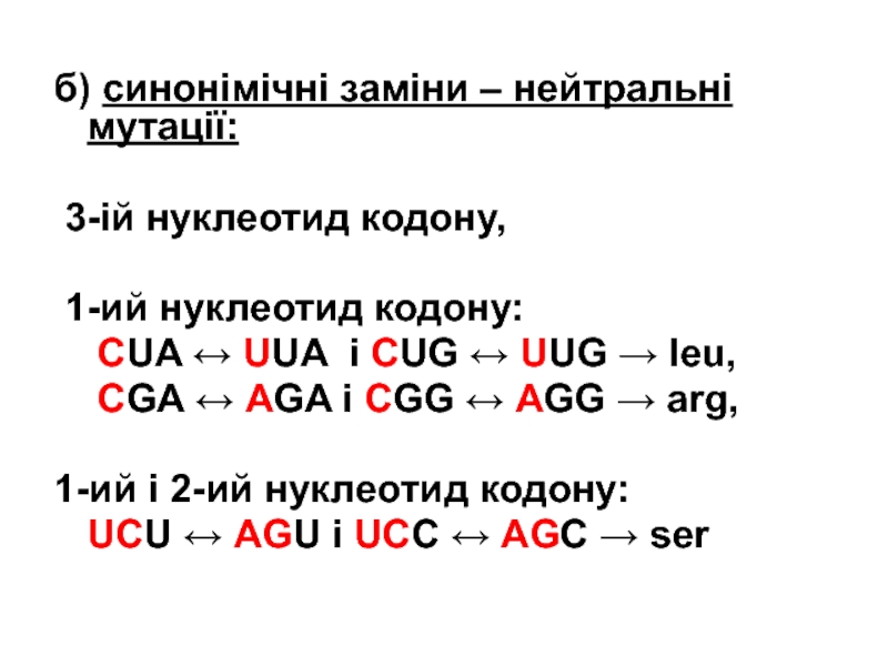 нуклеотиду іншим. Найбільше загальні — заміна пурину на пурин (A↔G) або