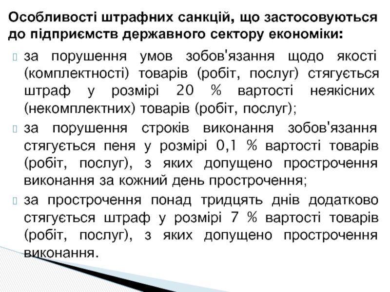 Особливості штрафних санкцій, що застосовуються до підприємств державного сектору економіки: