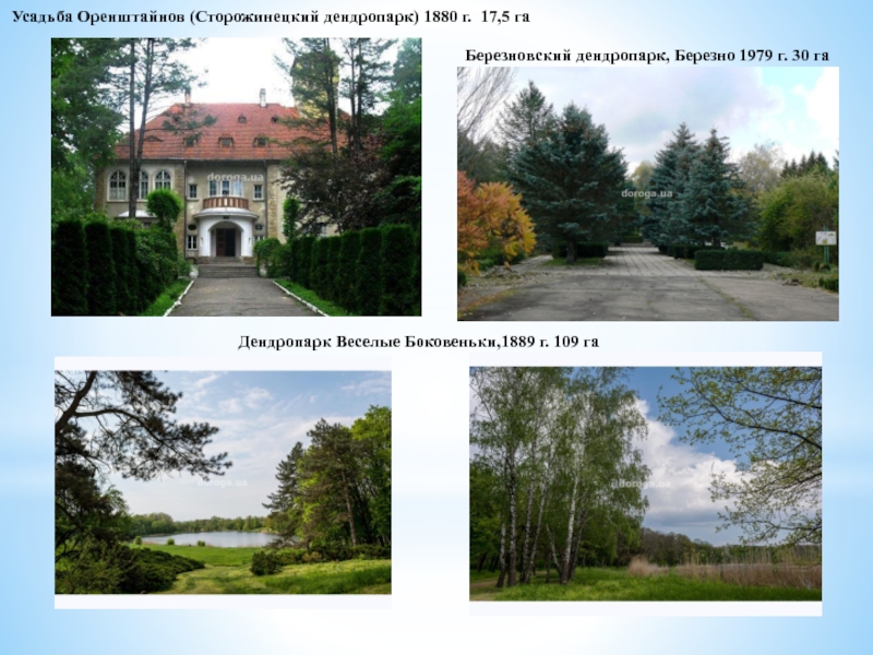 Слайд 19Усадьба Оренштайнов (Сторожинецкий дендропарк) 1880 г. 17,5 га