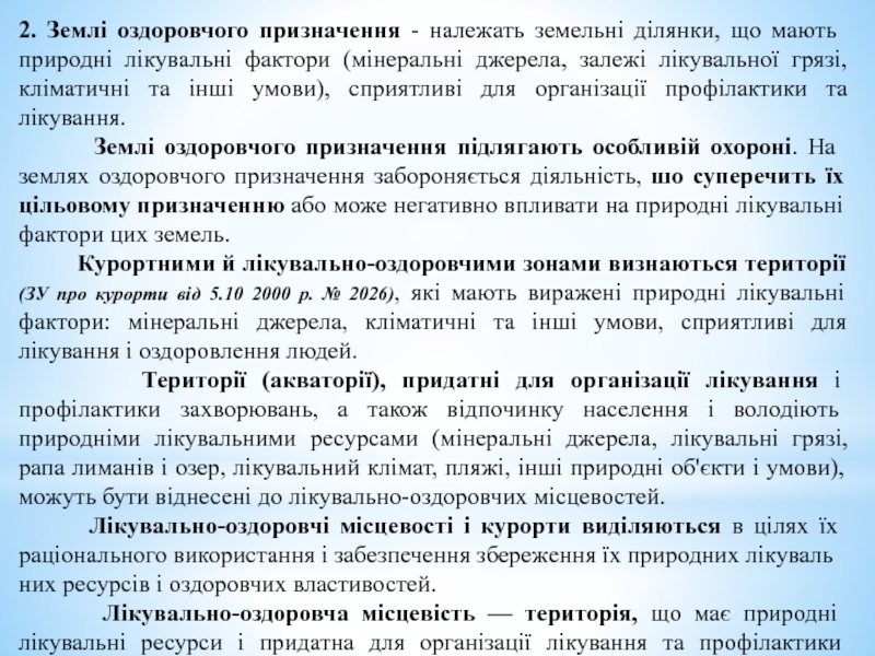 Слайд 242. Землі оздоровчого призначення - належать земельні ділянки, що мають