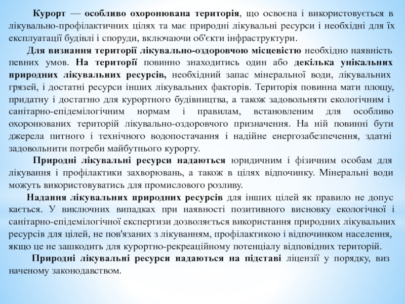 Слайд 26 Курорт — особливо охоронювана територія, що освоєна