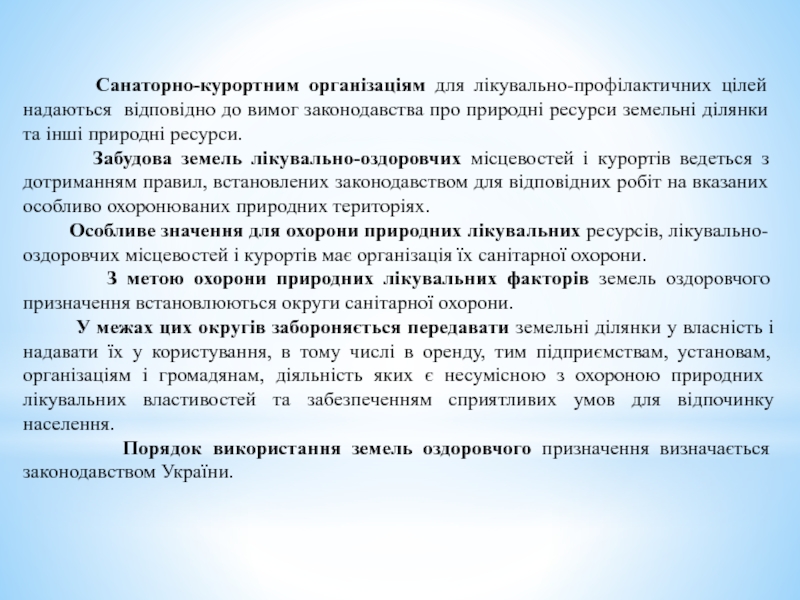 Слайд 28 Санаторно-курортним організаціям для лікувально-профілактичних цілей надаються