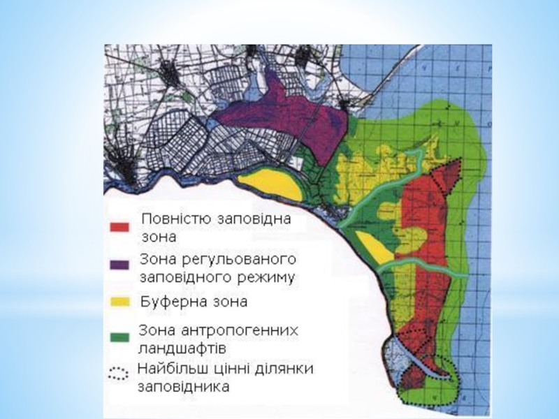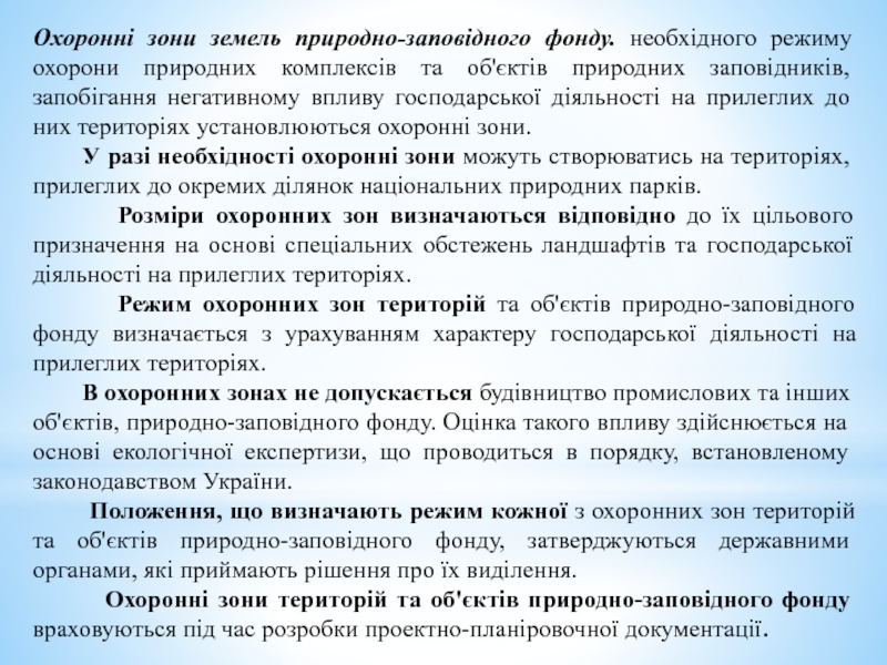 Слайд 23Охоронні зони земель природно-заповідного фонду. необхідного режиму охорони природних комплексів