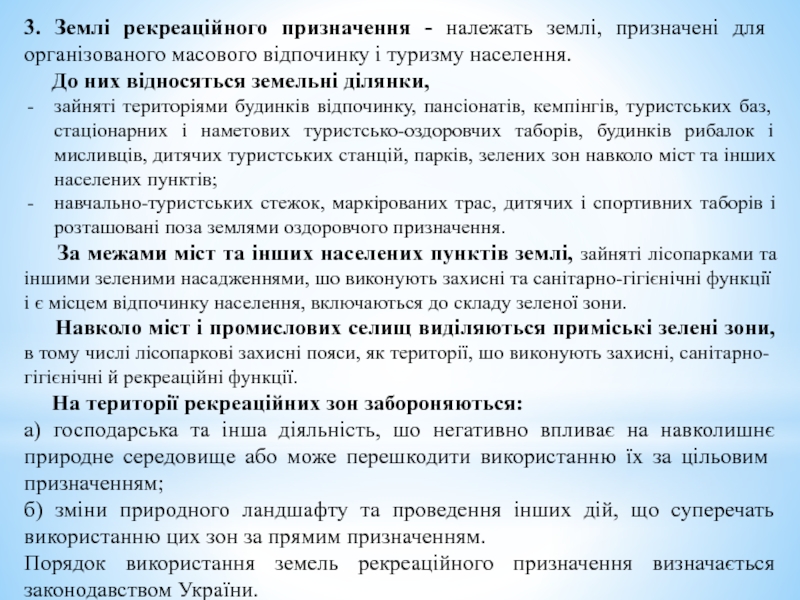 Слайд 293. Землі рекреаційного призначення - належать землі, призначені для організованого