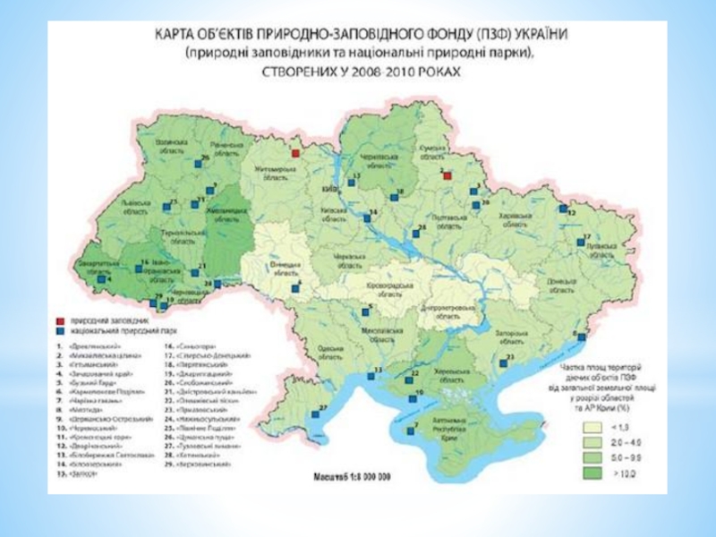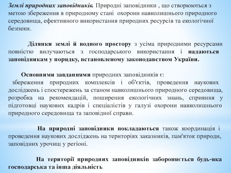 Слайд 9Землі природних заповідників. Природні заповідники , що створюються з метою