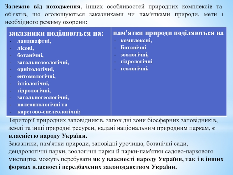 Слайд 5Залежно від походження, інших особливостей природних комплексів та об'єктів, шо