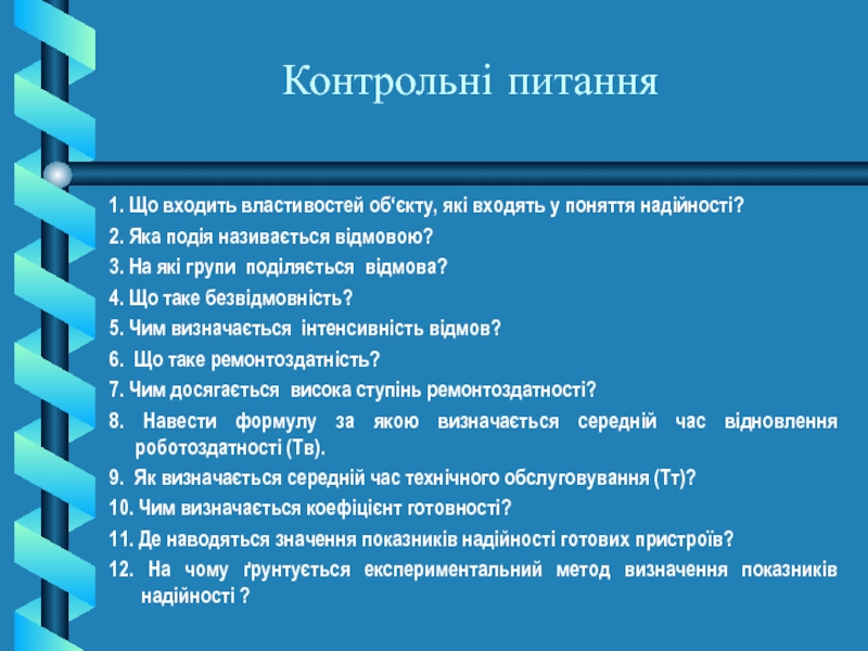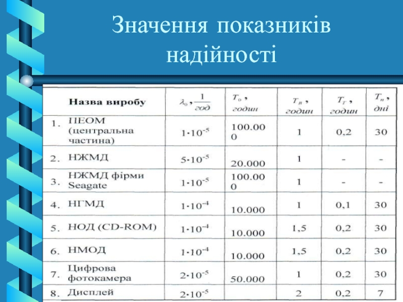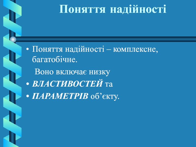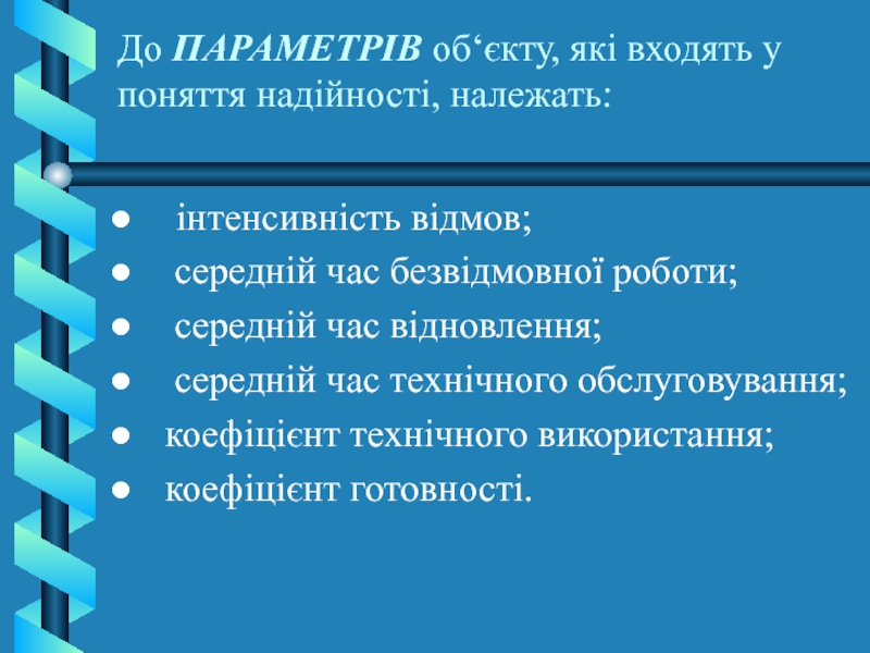 Слайд 6До ПАРАМЕТРІВ об‘єкту, які входять у поняття надійності, належать: