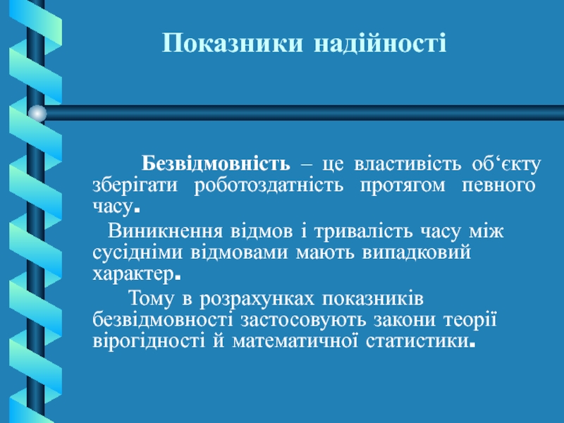 Тому в розрахунках показників безвідмовності застосовують закони теорії вірогідності й математичної статистики.