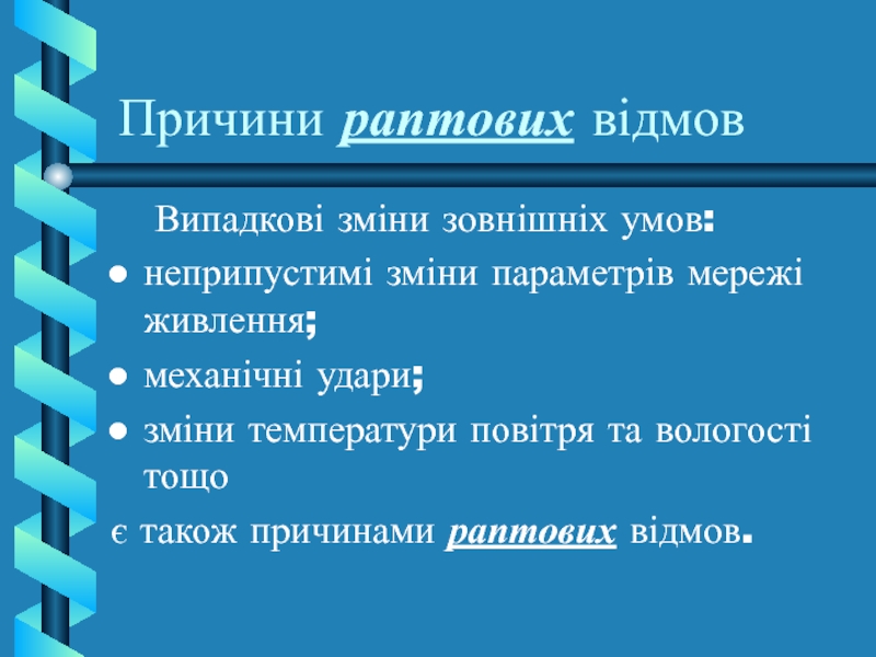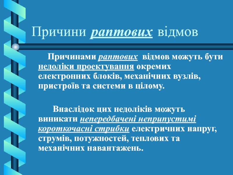 причинами виникнення дефектів, які спричиняють раптові відмови.