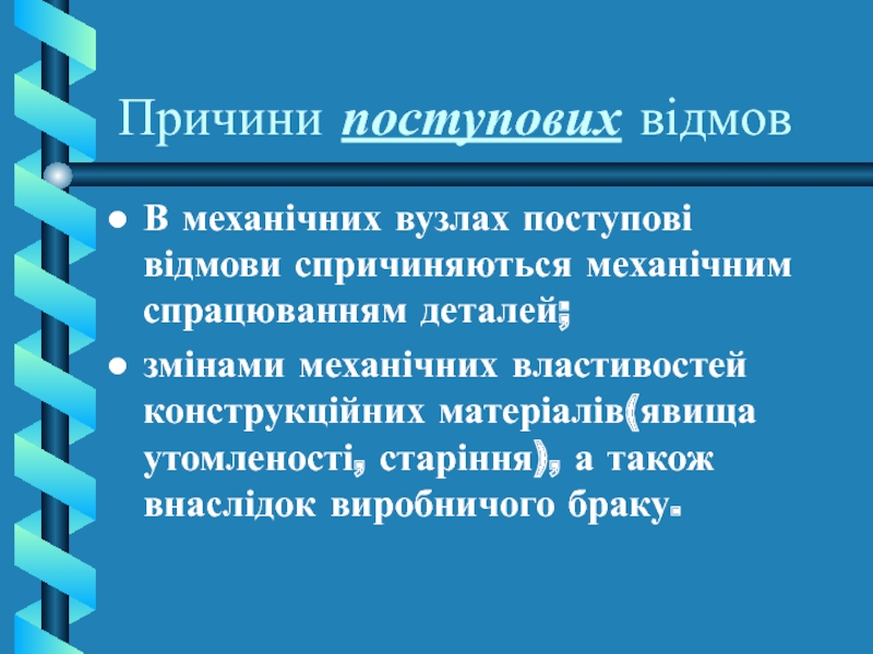 В механічних вузлах поступові відмови спричиняються механічним спрацюванням