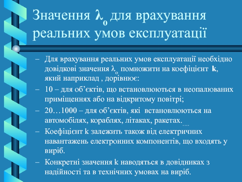 Конкретні значення k наводяться в довідниках з надійності та в технічних умовах на виріб.