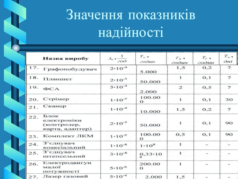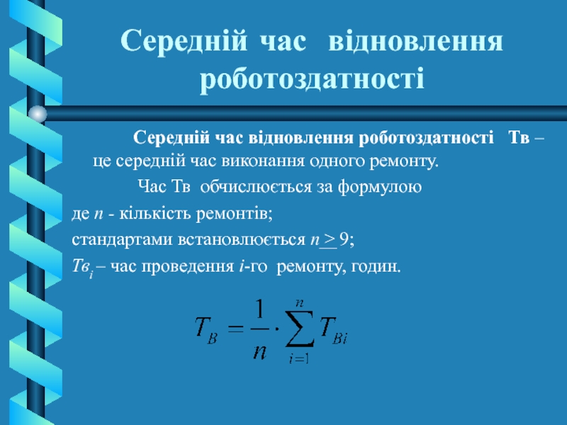 Слайд 30 Середній час відновлення роботоздатності Тв – це середній
