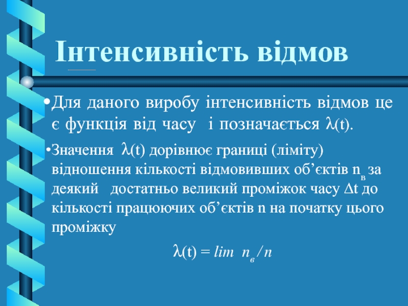 Частоту відмов прийнято характеризувати поняттям інтенсивності відмов.