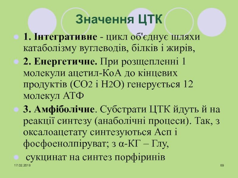 1. Інтегративне - цикл об'єднує шляхи катаболізму вуглеводів, білків