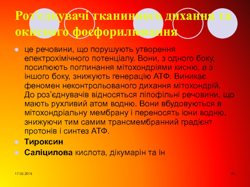 Слайд 83Роз'єднувачі тканинного дихання та окисного фосфорилювання
