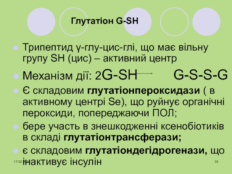 H2O2 + 2G-SH → 2H2O + G-S-S-G (глутатіонпероксидаза)