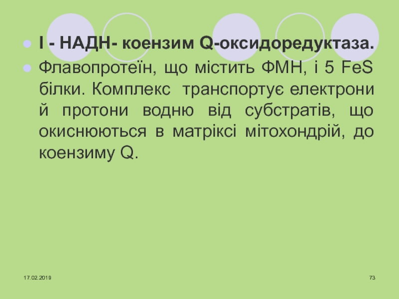 Слайд 73I - НАДН- коензим Q-оксидоредуктаза.
