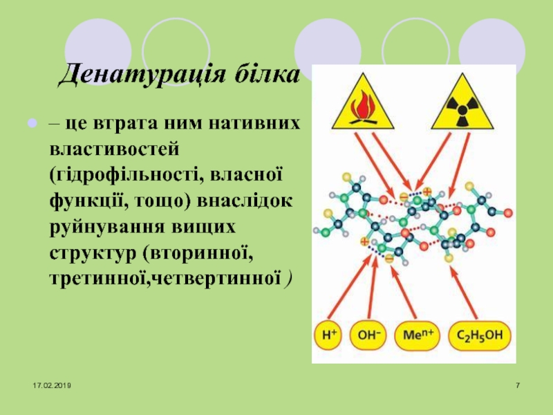 тощо) внаслідок руйнування вищих структур (вторинної, третинної,четвертинної )