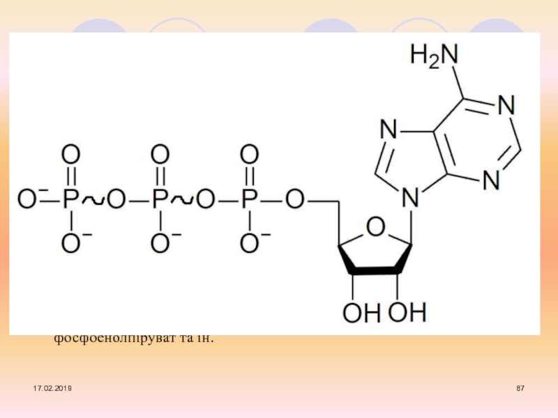Слайд 87Речовини, гідроліз яких призводить до вивільнення понад 21кДж/моль енергії, відносять
