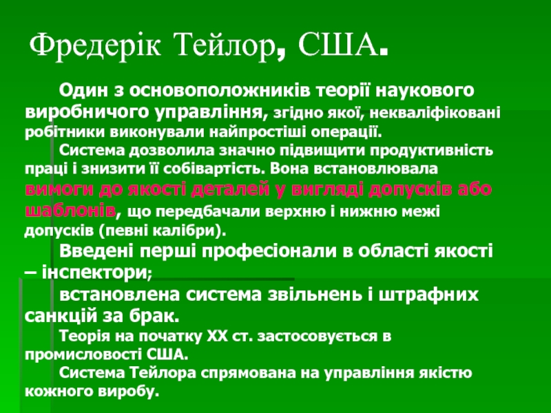 Система Тейлора спрямована на управління якістю кожного виробу.