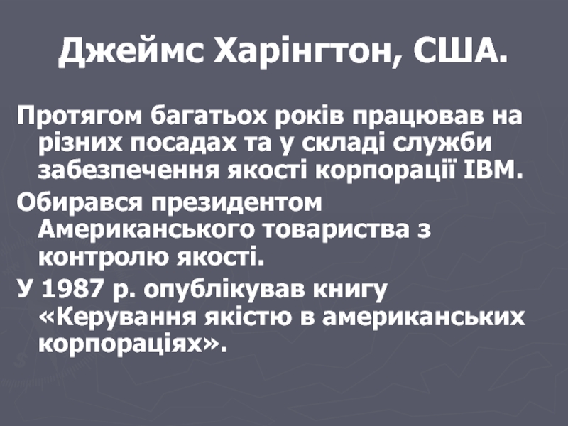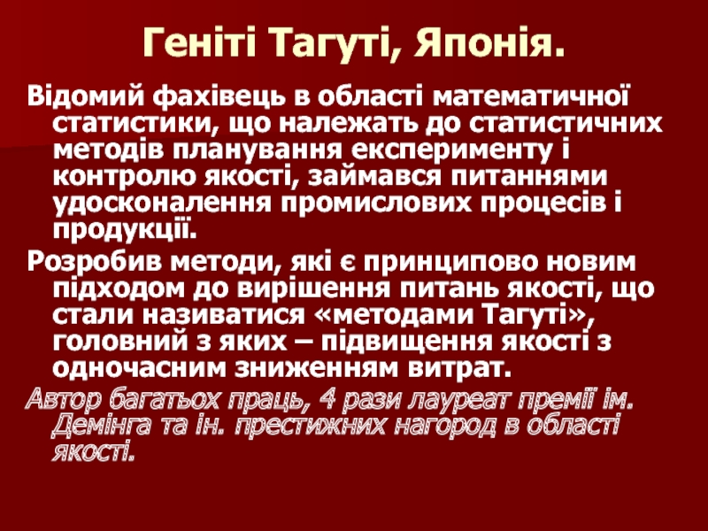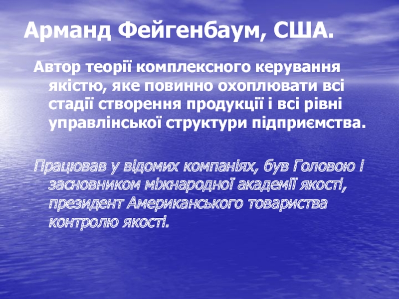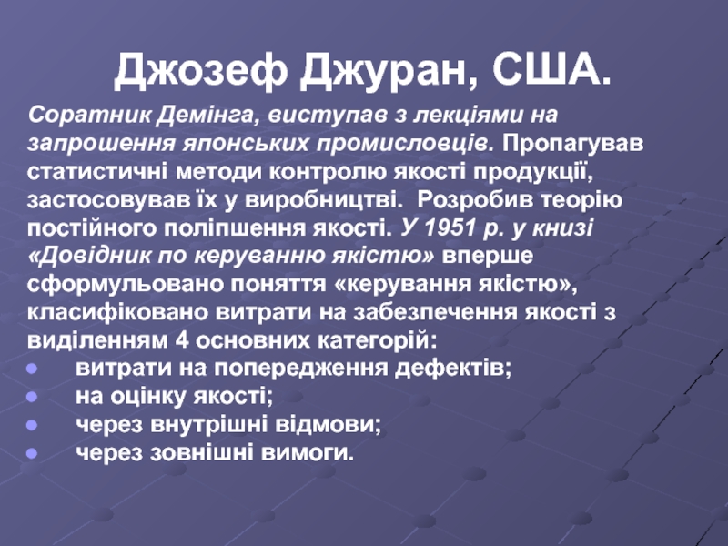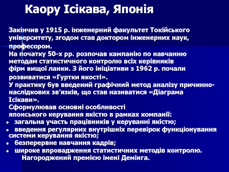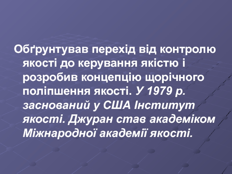 Слайд 24Обґрунтував перехід від контролю якості до керування якістю і розробив