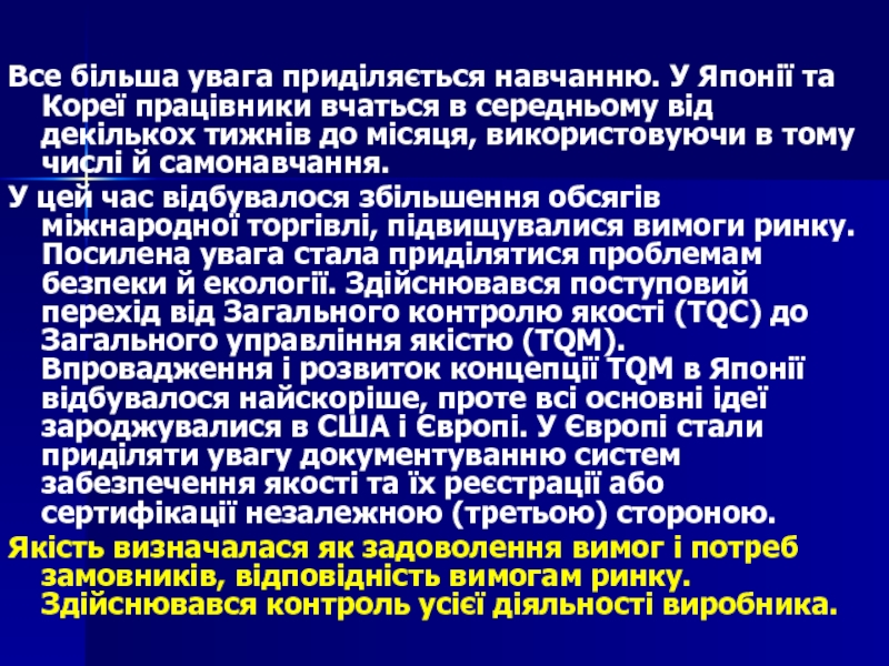 відбувалося активне поширення принципів TQM, орієнтованих на постійне