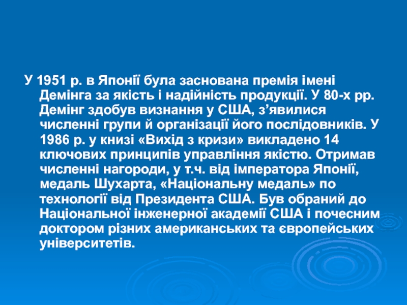 за якість і надійність продукції. У 80-х рр. Демінг здобув
