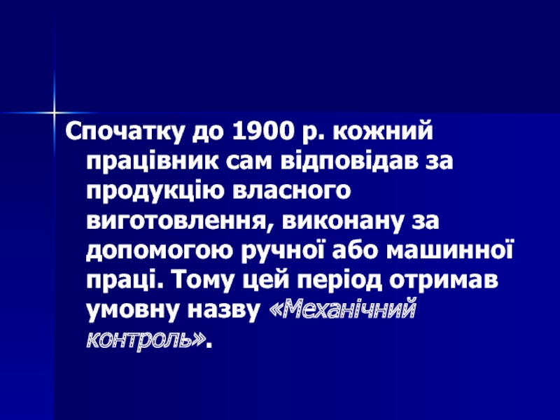 Слайд 4Спочатку до 1900 р. кожний працівник сам відповідав за продукцію