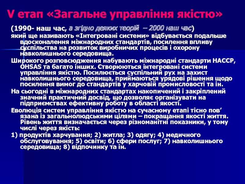 Еволюція систем управління якістю на сучасному етапі тісно пов’язана із загальнолюдськими цілями – покращання якості життя. Рівень життя визначається через різноманітні показники, у тому числі через якість: