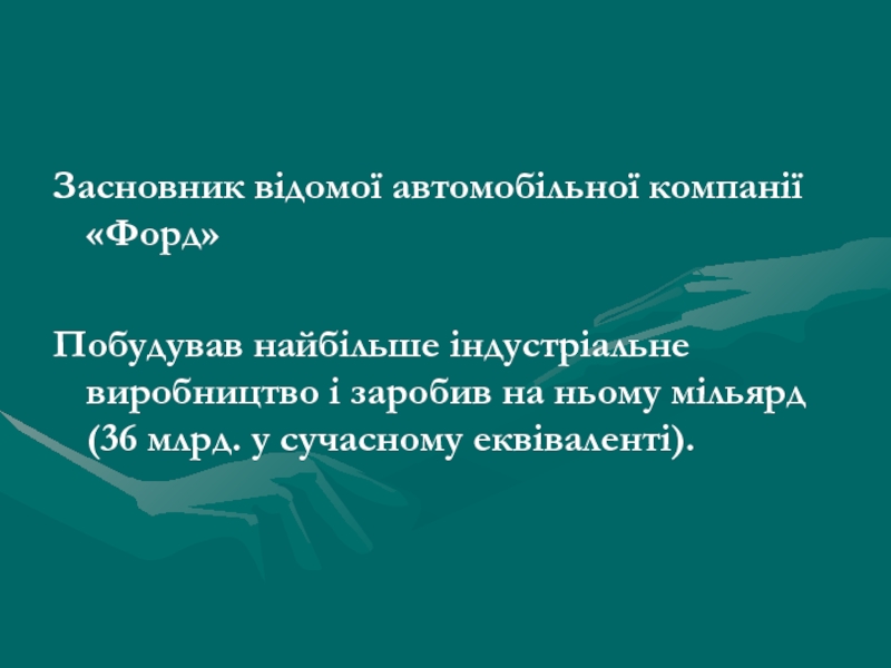 Слайд 18Засновник відомої автомобільної компанії «Форд»