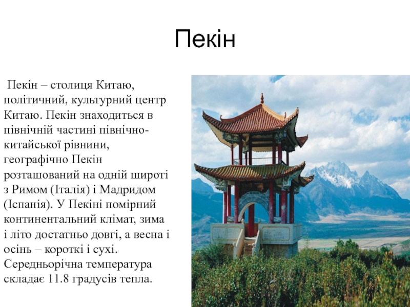 Пекін – столиця Китаю, політичний, культурний центр Китаю. Пекін