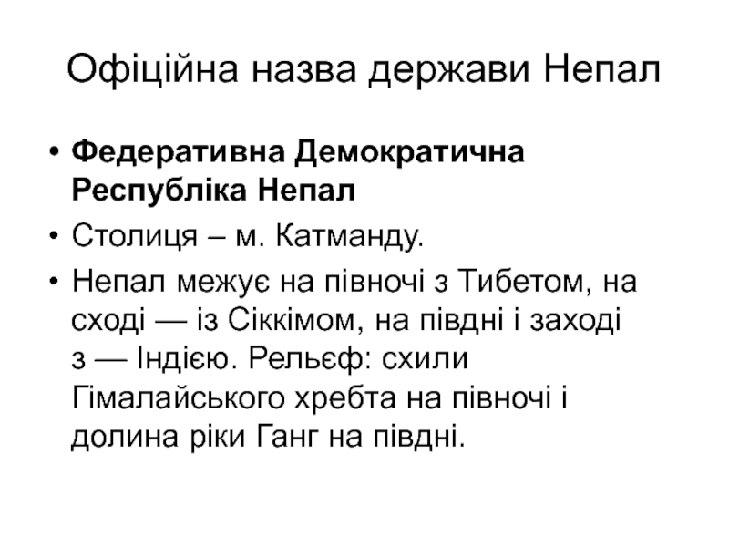 Слайд 6Офіційна назва держави Непал