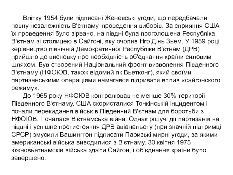 Слайд 119 Влітку 1954 були підписані Женевські угоди, що передбачали повну незалежність