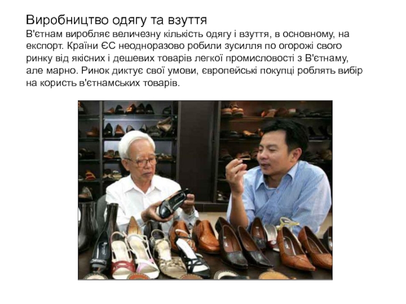 по огорожі свого ринку від якісних і дешевих товарів легкої промисловості з В'єтнаму, але марно. Ринок диктує свої умови, європейські покупці роблять вибір на користь в'єтнамських товарів.