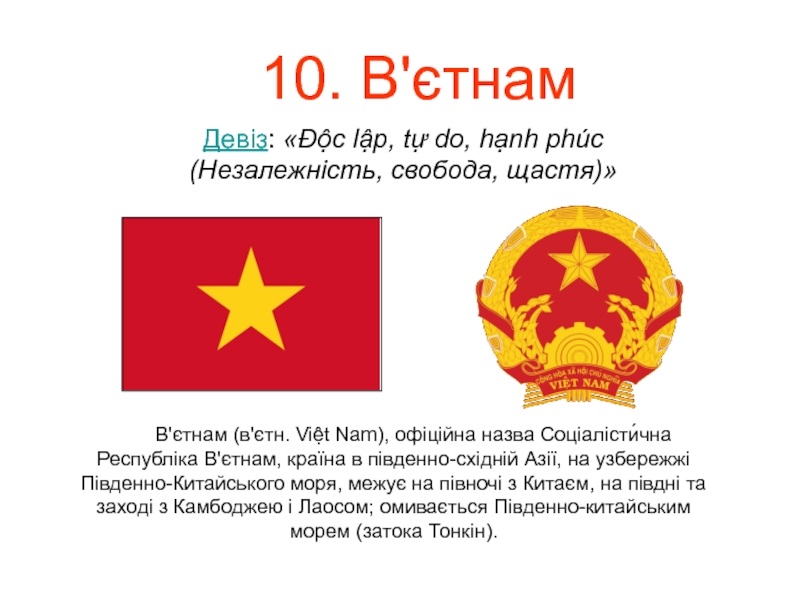 Соціалістична Республіка В’єтнам.
