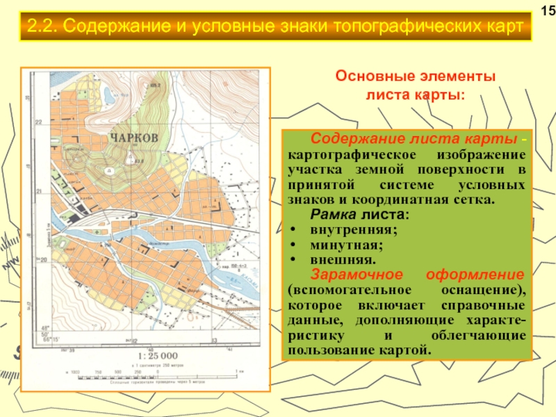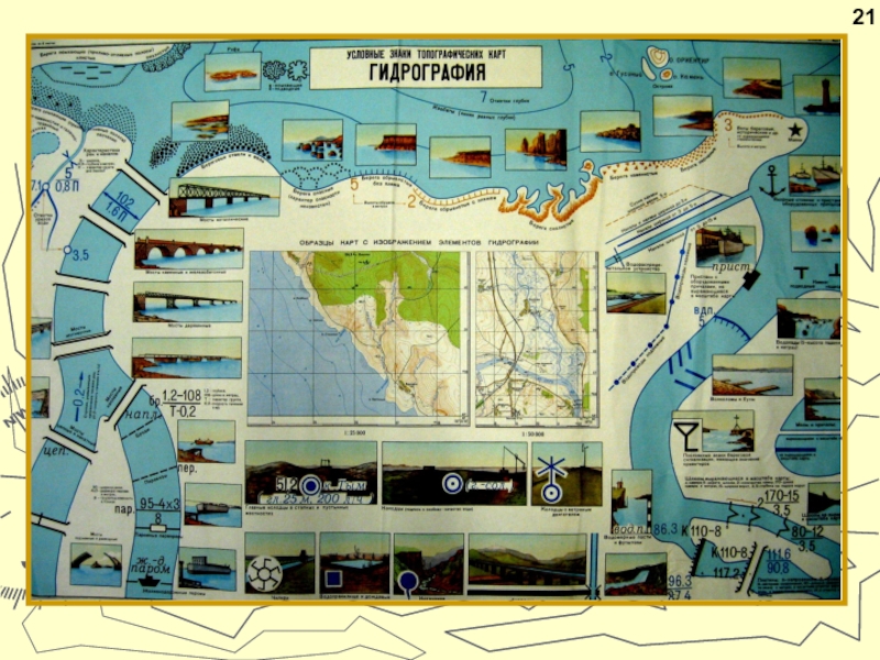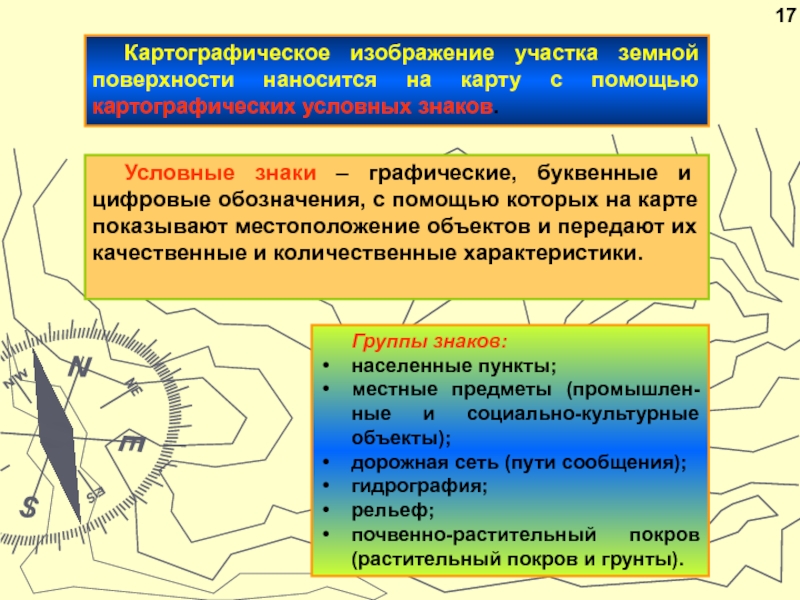 (контурные, площадные) обозначают объекты, выражающиеся в масштабе карты, т. е.